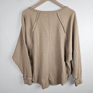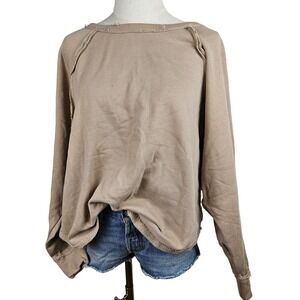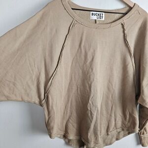 Bucket List French Terry Oversized Sweatshirt M Tan Raw Seam Wide Neck