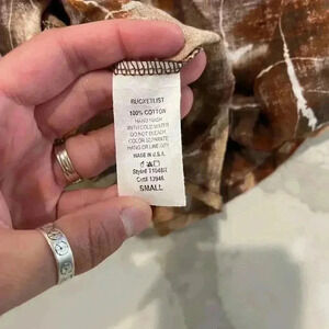 Bucket List Mood Setter Multi Brown LongSleeve Smocked VNeck Blouse Womens Small