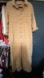 Stylish tan button-up jumpsuit with long sleeves and front pockets.