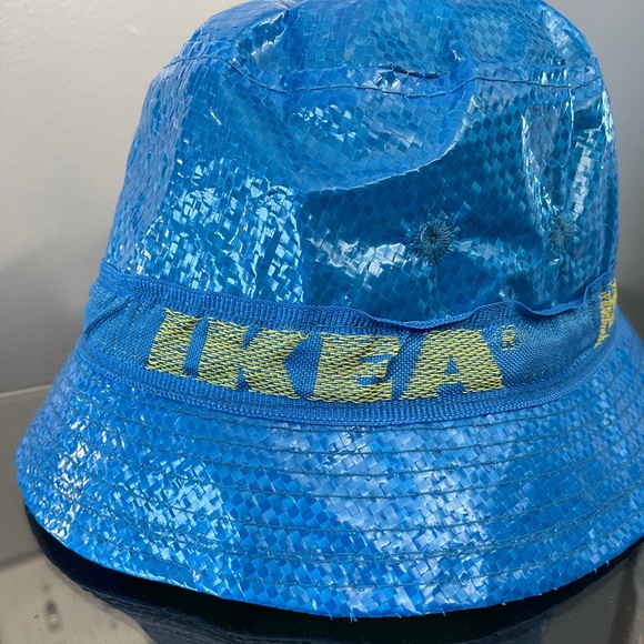 Recycled IKEA bag bucket hat. Never worn (except for try on in photo)