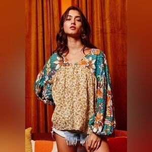 Bucket list Contrast Detail woven dressy boho top sz L condition: very good pre owned