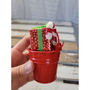 Bucket pale red presents candy cane homemade ornament Xmas tree