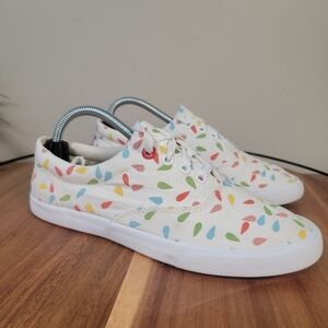 Super cute canvas sneakers with multi color raindrop print. Lace up. casual, comfy.