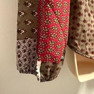 Bucketlist Boho Bandana Print Top Red Gray Brown Shirt Small