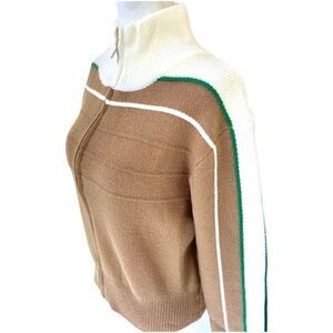 Bucketlist Color-block Wool Blend Full Zip Knit Cardigan Sweater Brown Ivory Medium