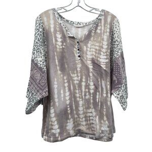 Bucketlist Mixed Print Pullover Top 3/4 Wide Sleeve Womens Size Small