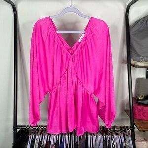 Bucketlist Pink Blouson Sleeve Flowy Top