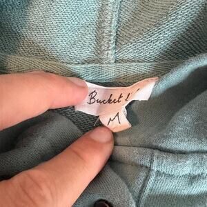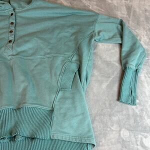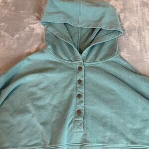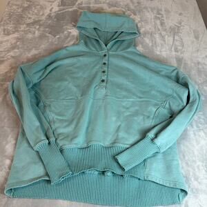 Bucketlist Pullover Button Up Hoodie Women's Size M teal Oversized thumb holes