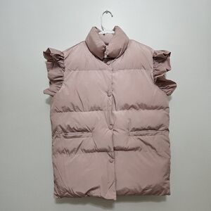 This Bucketlist vest offers ruffle sleeves detail with spread neck and button closure.