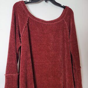 Bucketlist Women's Rust Red Chenille Long Sleeve Top w/thumb holes