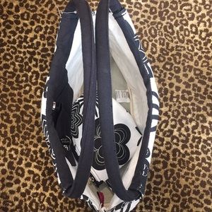 black and white floral canvas tote with matching mini bag