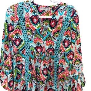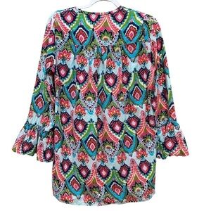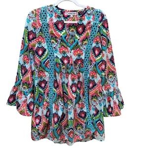 Buckhead Betties Bright Multicolor Boho 3/4 Sleeve Flowy Tunic Gypsy M