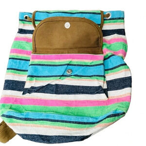 Buckhead Betties Striped Colorful Backpack Made in India 100% Cotton Beach Bag