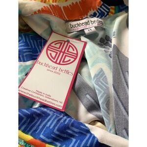 BUCKHEAD BETTIES bright colorful tropical print dress. The Lei’d Back Jada Dres. Size M. New With Tag. Oh so summery. Simple little over the head dress. Collared V neck. 3/4 length sleeves. Wear it to dinner after a day at the beach, wear it to lunch or shopping with the girls, wear it as a swimsuit coverup. Easy, comfy. Dress it up or down with your choice of shoes and jewelry. Great addition to your summer wardrobe.