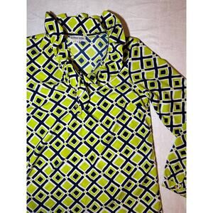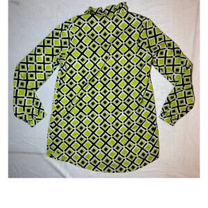 Buckhead Betties Woman's Green Geometric Work Ruffle Blouse Size Small
