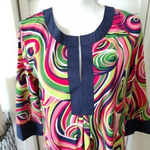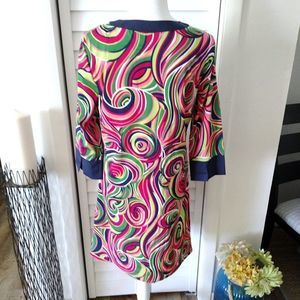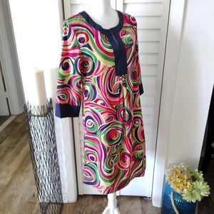 Buckhead Betties womens multicolor shift dress with navy trim 3/4 sleeve. Sz. M