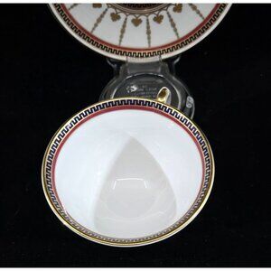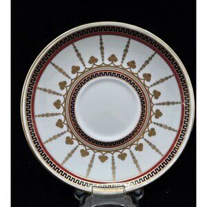 Dine like a Queen! This exquisite Buckingham Palace 1996 teacup and saucer set offers a touch of royal elegance with its intricate gold trim and sophisticated Greek key pattern. A must-have for collectors and those who appreciate fine craftsmanship, this set serves as both a functional piece and a decorative statement.