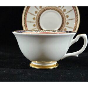 Buckingham Palace 1996 Teacup & Saucer Set Gold Trim Elegant Greek Key Pattern