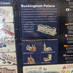 Buildream Item# BD-B045, Buckingham Palace 3D puzzle. Brand new, still shrink-wrapped. Age 7+. 61 pieces. Measures 15.3"x5.3"x4.6" when assembled.