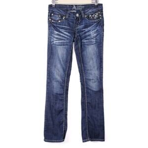 Buckle Antique Rivet Factory Distressed Rhinestone Pocket Boot Cut Denim Jeans
