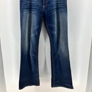 Buckle BKE Denim Jeans Kate Stretch Bootcut Whiskers 32x35.5 Medium Dark Wash