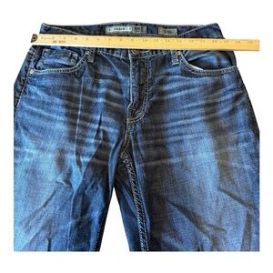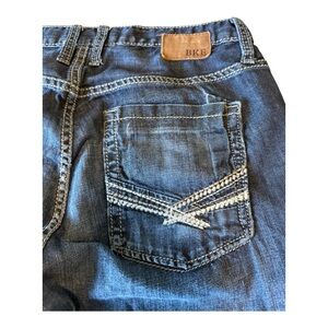 Buckle BKE Derek Bootleg Men’s Blue Denim Jeans Wiskering Western Bootcut 33S