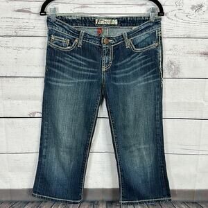 Buckle BKE Jeans Womens 27 Blue Cropped Stretch Sabrina Thick Stitch Country