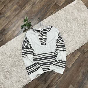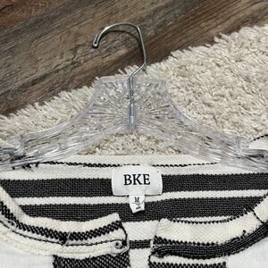 Buckle BKE Medium Oversized White Black Striped Distressed Bell Sleeve Sweater