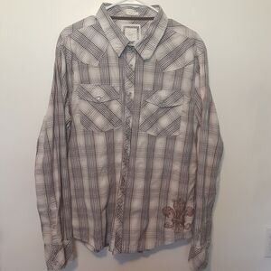 Buckle BKE Men Shirt XL Gray Plaid Slim Fit Pearl Snap Long Sleeve Western
