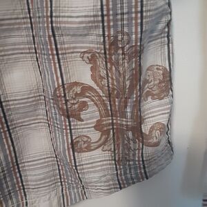 Introducing a stylish Buckle BKE Men Shirt in XL size with a trendy gray plaid pattern. This long-sleeved shirt features a collared neckline and a slim fit design that flatters your physique. The shirt is made of high-quality cotton material and accented with a buckle detail that adds a touch of western flair.
