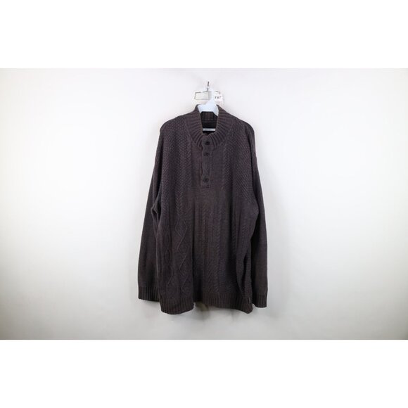 Buckle BKE Mens 2XL Thrashed Chunky Fisherman Cable Knit Henley Sweater Gray