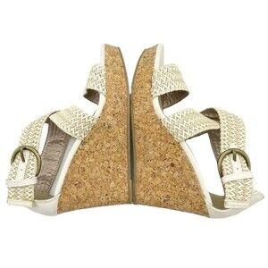 Buckle BKE Sole Reid Cream & Cork Platform Woven Strap Sandals Women’s Size 8.5