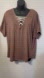 BKE women’s short sleeve lace-up t-shirt in Brown. Soft and stretchy fabric with tattered distressing throughout and crisscross lace-up front.