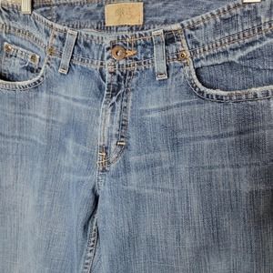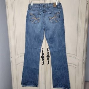 Buckle BKE Wendi Lowrise Flare Distressed Stretch Thick Stitch Jeans