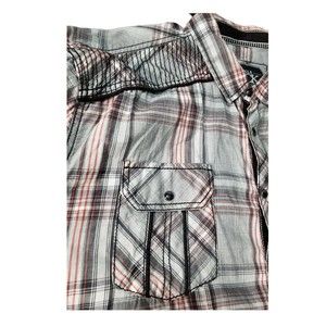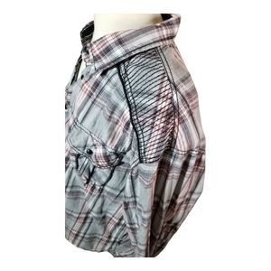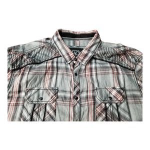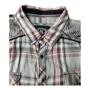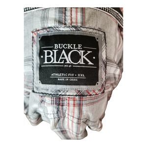 Buckle BLACK Brand Button Up Pearl Snaps Plaid Shirt Top Athletic Fit Sz XXL
