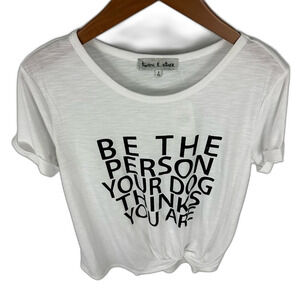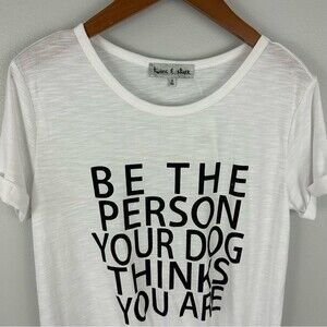 NWT New with tag Twine & Stark for Buckle be the person your dog thinks you are white short sleeve graphic casual comfy athleisure t-shirt top size Small.