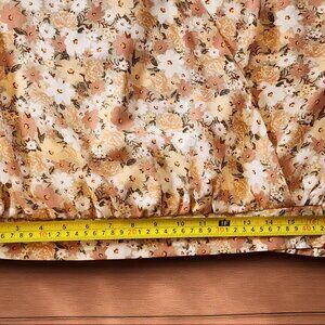 Add a feminine touch to your wardrobe with this adorable Buckle Black floral blouse in size small. Featuring a vintage-inspired all-over floral print in soft peach, cream, and blush tones, this top has a draped surplice front, smocked waistband for a flattering silhouette, and relaxed batwing-style sleeves. Perfect for brunch dates, office chic, or weekend getaways!
