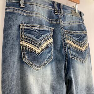 Buckle Black Jeans Fit No 11 Straight Leg Whiskered Thick Stitch Dark Wash 38R