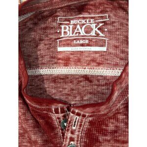 Buckle Black Mens Long-Sleeve Burgundy Top With Button Neck Design