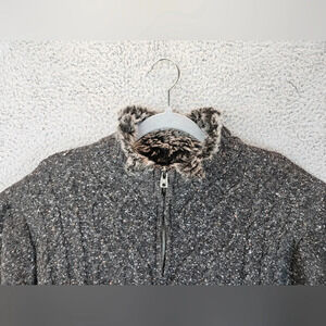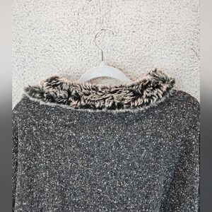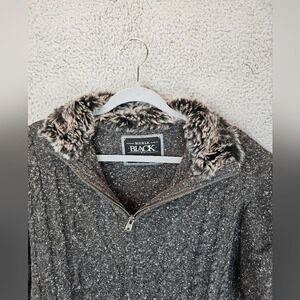 Buckle Black Mens Pull Over Faux Fur With Zip Textured Speckles Sweater Sz XL
