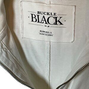 Elevate your casual wardrobe with this Buckle Black full-zip jacket. The slim fit size large and clean design make it a versatile addition for any occasion.