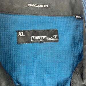 Buckle Black Men's XL Blue Striped Long Sleeve Button-Up Shirt Y2K Rock