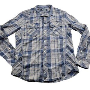 Buckle Black Pearl Snap Shirt Mens Medium Gray Blue Plaid Long Sleeve Standard