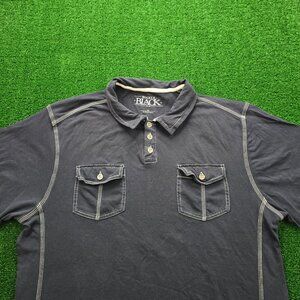Buckle Black Polo Shirt Mens XL Navy Blue Short Sleeve Slim Double Front Pocket