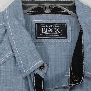 Buckle Black Shirt Men's Large Blue Long Sleeve Solid Pearl Snap Standard Fit