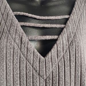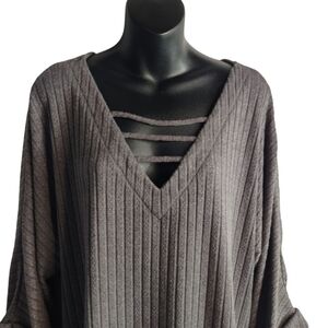 Buckle Black Women Oversize Dark Grey Vneck Sweater Shortsleeve Stretch Sz L NWT