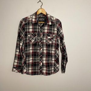 Buckle Black men’s plaid snap front shirt Sz XL (18-20)