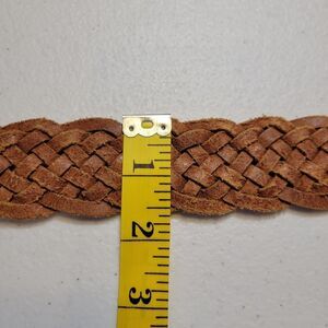 Buckle Braided Woven Tan Leather Belt with Decorative Brass Toned Buckle