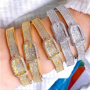 Buckle Design 18K Gold Plated Crystal Bangle Bracelet.