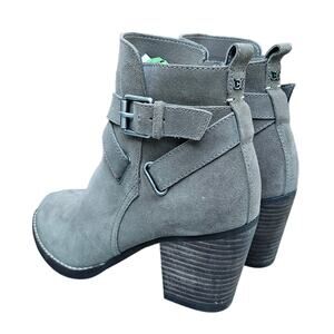 Buckle Detail Heeled Ankle Boot Sam Edelman Morris Size 8.5 Taupe Suede Leather